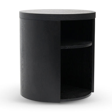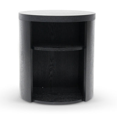 CST8204-CN 46cm Round Bedside Table is shrouded in a sleek black hue that embodies a sense of contemporary refinement and artistic poise. Its compa...