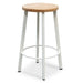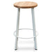 Thick and flat metal legs and frame in a white finish for ultimate stability Durable round timber seat in a natural wood veneer finish Additional round footrest offers support Black feet protectors included to prevent slipping and scuffing