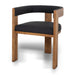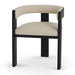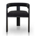 60% linen 40% cotton upholstery Elm timber construction Foam cushioning Full black finish Open-back design with wrap-around backrest Rectangular frame with built-in footrest Modern design Weight Capacity: 120 kg Product comes fully assembled