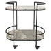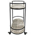 Serve your guests without forgoing function or style. The Southside marble drinks trolley takes minimalism to the next level, featuring a sleek iron frame in a black powder coated finish with inlaid solid grey marble shelves. This multi-tiered drinks trolley is as fashionable as it is functional. Rolling castors allow for effortless mobility but lock when a stationary setting is desired. Suitable for any classic or contemporary living space.