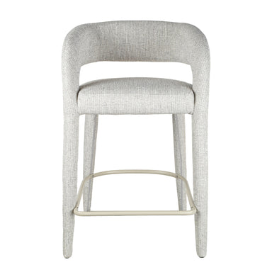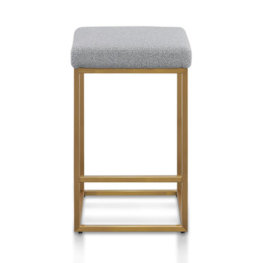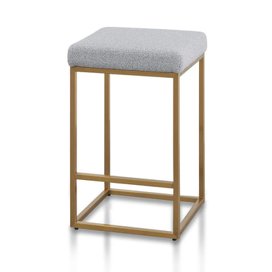 100% Polyester fabric seat cushion Pepper boucle upholstery Brushed gold stainless steel frame and base Non-slip floor protector on thin base leg S...