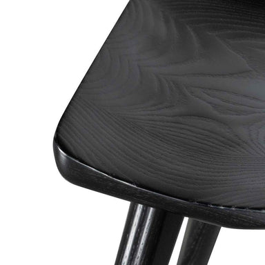 Frame and legs in solid wood construction Powder black finish showcasing deep wood grains Ash wood seat in a moulded and contoured form Flared and ...