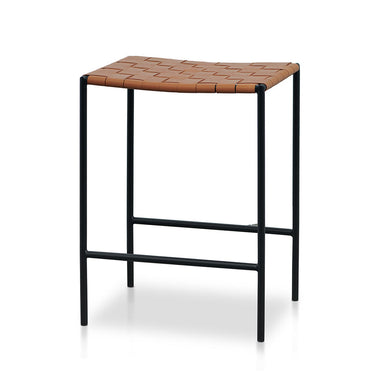Steel frame with a black powder coating Seat is woven with tan cow leather Slim black legs with non-skid floor protectors 150kg weight capacity Pro...