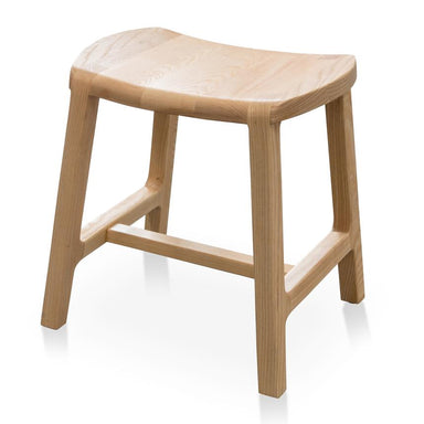 Made from solid ash wood in a natural finish Slightly curved seat for a comfortable sitting Bar support and feet rest for added stability Curved li...