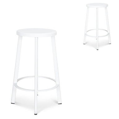 Introducing the 65cm Timber Seat Bar Stool in White, a stylish and functional addition to any kitchen or bar area. This set of two bar stools featu...