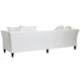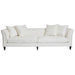 The Tailor Sofa offers both supreme comfort and striking aesthetics to the transitional or traditional living space. This upholstered 3 seater tailored sofa features feather and foam plush scatter cushions. Frame made of hardwood timber with inner spring suspension. Upholstered in ivory linen/viscose with a low back sleek design of rounded wedge arms. Complete with timber legs with silver caps.