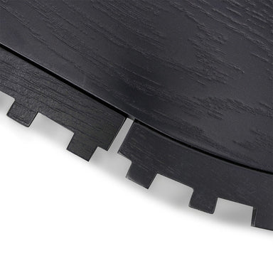 Engineered wood and black oak veneer construction Features E1 standard paneling Round table top in a wooden black finish Tri-base built in a wide r...