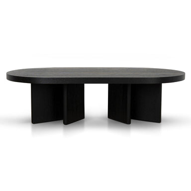 Oval shaped table top made from ash veneer in a black finish Stable and supportive metal legs in a black powder coat finish Slim design to suit apa...