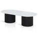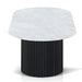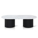Black engineered wood base with vertical lines Real marble in elliptical tabletop with grey veining Fluted matte black finish 2x spherical black bases Product requires minor assembly Note: Melbourne pick-up and delivery only