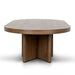 Engineered wood with oak veneer construction Caramel oak finish Oval tabletop Open triangular legs Modern geometric design Product comes fully assembled