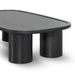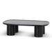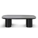 Solid oak wood frame construction Plywood veneer legs Rectangular tabletop with curved edges 4 thick spherical bases in matte black Intricate wood grain patterns Subtle elevated border top Weight Capacity: 70 kg Product is flat packed and requires two-person assembly