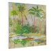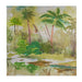 Crafted by American artist Shay, this captivating artwork transports viewers to a serene tropical landscape. Rich with textured layers and soothing green hues, the painting encapsulates nature's beauty, highlighting palm trees and reflective waters. Shay’s transition from Cordon Bleu chef to an accomplished painter is evident in the meticulous detail and emotional depth of her work. This piece celebrates Shay’s mastery of blending colour and texture, offering a timeless addition to contemporary or rustic interiors.