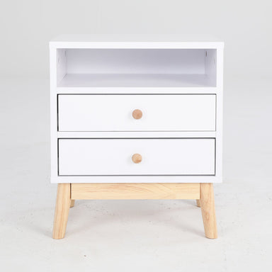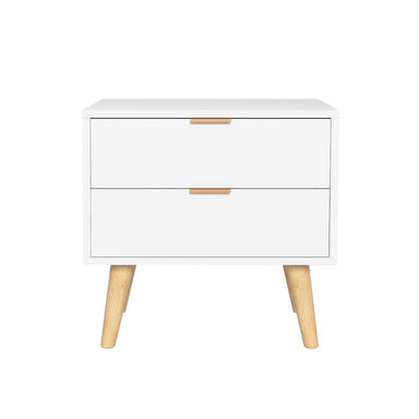 Introducing the Artiss Bedside Table 2 Drawers in White, a stylish and functional addition to any bedroom. Made from durable particle board, this b...
