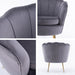 Armchair Padded Lounge Chair Accent Velvet Shell Scallop GREY