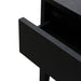 Features 1x drawer with two section ball-bearing rail for a smooth open and close Black veneer finish adding a deep wood palette to the decor Sturdy MDF build for long-lasting build and strength Elevated solid wood leg to add height and lightness to the overall design Narrow silhouette to suit smaller and compact interiors. Note: Minor assembly required.