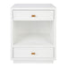 The Logan bedside table brings a refined and simple elegance to your space with a white satin finish and clean firm lines, tempered with subtle shaker panelling. A roomy nook between two drawers provides the perfect organisation solution. The timeless design of the Logan bedside table sits comfortably within a contemporary or classically styled environment offering true versatility with the option between brushed gold and polished nickel handles.
