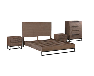 5 Pieces Bedroom Suite made in Solid Wood Acacia Veneered King Size Oak Colour Bed, Bedside Table, Tallboy & Dresser