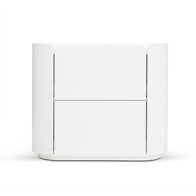 Engineered wood with veneer White oak veneer finish Pull-to-open drawers Minimalistic design Enhances bedroom aesthetics Rounded corners Weight Cap...