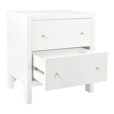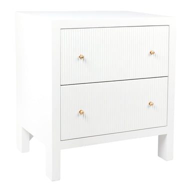 Enveloping your space with a light atmosphere, the Ariana small bedside table possesses intricate features from the fluted drawer fronts to the bru...