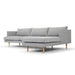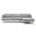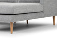 CLC2864-FA 3 Seater with Right Chaise Sofa will infuse seamlessly into your living room with it's structured yet effortlessly relaxing Scandinavian design. The short tapered wooden legs bring a mid-century modern vibe, that’s paired with grey upholstered cushions keeping it simple and clean.