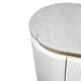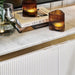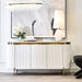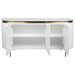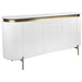 An enduring example of expert craftsmanship, the Demarco buffet boasts contemporary curvature and style with its mid-century modernism profile and detailed ribbed facing in an ethereal shade of white. The introduction of warm metallic highlights through the streamlined brass finished iron legs and slender gold plinth further elevate this sophisticated piece adding gentle glamour. Finished with a perfectly curved white Carrara marble top, the Demarco buffet offers undeniable modern elegance with its sleek frame, curved texture and refined detailing. Concealing a fixed shelf and co-ordinating white finished interior, the Demarco buffet provides ample storage and is a testament of superior form and function.