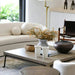 A statement piece inspired by a high-end Parisian apartment aesthetic with curved silhouette and rounded cushions. Designed for style, this sofa boasts a refined allure that combines contemporary forms with romantic and feminine flair. Upholstered in an easy to remove fitted slip cover for periodic cleaning. Frame made from sturdy solid hardwood timber with webbing and inner spring suspension. This standout piece is sure to make a statement in any modern living room with complimenting round cushions.