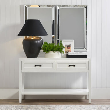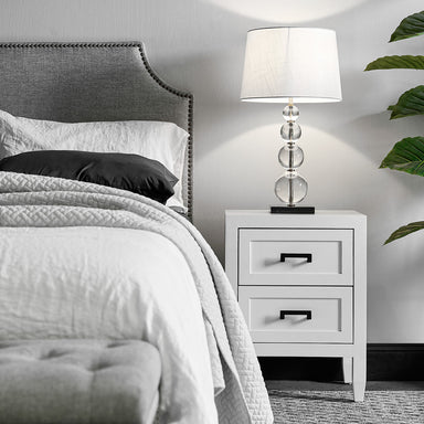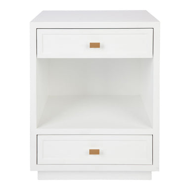 The Logan bedside table brings a refined and simple elegance to your space with a white satin finish and clean firm lines, tempered with subtle sha...