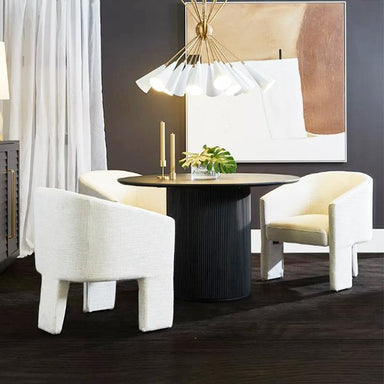 Infusing both traditional and modern spaces with striking sculptural style, the Arlo oval dining table in white is a spectacular furniture piece. A...