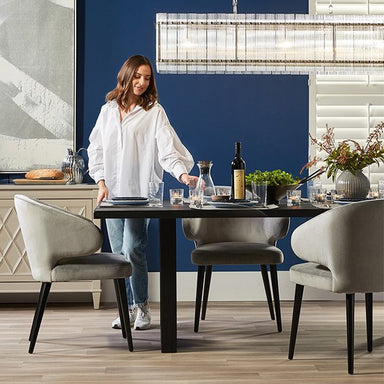 Modern, curved lines in classic dining hues come together to make the Paltrow dining chair range. Boasting clean curves and textured fabri...