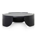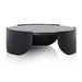 Engineered wood with black oak veneer Round table top in smooth black finish Tri-base with wide curved silhouette Promoting compact and generous form Natural wood grain for added texture Weight Capacity: 30kg Product is flat packed and requires two-person assembly