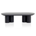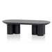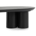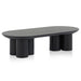 Made of engineered wood with veneer Long thick table top 2 sets of triple cylindrical legs Coated with a full matte black color Distributed weight capacity of 40kg Product is flat pack and requires a two-person assembly