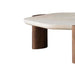 Solid wood frame construction Features travertine top Soft curved edges Rectangular walnut-finished legs Solid wood legs with visible wood grains Suitable for commercial use Minor assembly required Note: Melbourne Pick-up and Delivery Only Travertine marble is a natural stone which will have unique imperfections and characteristics Any variations in colour, texture, polish and patterns are not faults Travertine marble is porous; wipe away any liquid spills immediately using water or a mild cleaner to avoid marks. Placemats and coasters are recommended Differences between shipments is to be expected