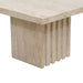 Crafted from natural travertine stone, the Atlas travertine coffee table range is undeniably striking. Uniting the tactile qualities of travertines warm tonal hues, distinctive veining and textural variations with bold architectural form, Atlas infuses both contemporary and classic interiors with alluring sculptural style. Available in three sizes at varying heights, Atlas small, at 30cm height, is meticulously handcrafted with a 53cm square honed top and contoured pedestal base celebrating the stones natural beauty. Stunning as single side tables, or as a coffee table cluster, the Atlas range of tables are truly timeless and have been sealed with a matte polish for added protection.