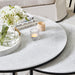 This beautifully adaptable nest of two coffee table set has been finished with a striking black powdercoated frame and quartz like manufactured stone tabletops. The fantastic nesting ability allows for a practical and versatile living piece.