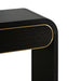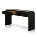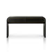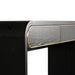 Engineered wood with walnut veneer Textures espresso black finish with NC lacquer coating Flat rectangular legs 2x handle-less drawers with brass lining Pull-to-open mechanism Product is fully assembled