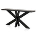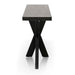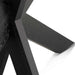 Engineered wood with black oak veneer construction X-cross base with contrasting linear tabletop Textured espresso black finish showcasing natural wood textures throughout Product requires assembly