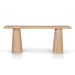 Timber top and legs Solid wood frame Natural finish with wax coating Suitable for various interior styles Sculptural design Two solid conical pedestal bases Weight Capacity: 100 kg Requires two-person assembly