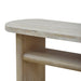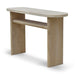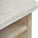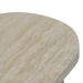 Travertine marble tabletop Elm base with veneer Oval top design One open shelf for extra display Rectangular legs with visible wood grain Weight Capacity: 50 kg Minor assembly required Note: Melbourne Pick-up and Delivery Only Travertine marble is a natural stone which will have unique imperfections and characteristics Any variations in colour, texture, polish and patterns are not faults Travertine marble is porous; wipe away any liquid spills immediately using water or a mild cleaner to avoid marks. Placemats and coasters are recommended Differences between shipments is to be expected