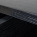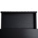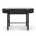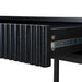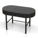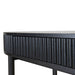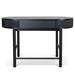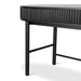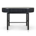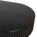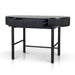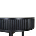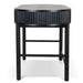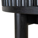 Engineered wood with oak veneer Full black finish with NC coating Vertical wood panel design Oval top shape 1 handleless drawer Push-to-open mechanism Spacious storage compartment Solid oak wood legs Includes legs support Weight Capacity: 70 kg Required two person assembly