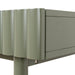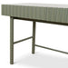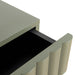 Engineered wood cabinet Solid beech wood legs Green finish 80% engineered wood, 20% solid oak Fluted front panel Two spacious drawers Cross-leg frame Ideal for contemporary and Scandinavian interior Weight Capacity: 80 kg Product is flat packed and requires two-person assembly