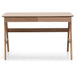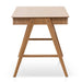 18mm tabletop in an engineered wood and natural oak veneer construction Frame and flared legs made from solid oak Trestle style with an added support beam 2x drawers on smooth metal rails Notes : Product is flat packed and requires two-man assembly with an electric drill. As this product is flat-packed, please note that once the item has been partially or fully assembled, it will not be eligible for a change of mind return. Change of mind returns will only be accepted if the assembly has not been attempted and the item is in the original packaging.