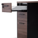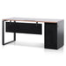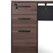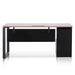 Engineered wood with walnut oak veneer construction Heavy-duty steel base in powder black finish Lockable storage with removable modesty panel Features 3x drawers for convenient organisation Features 1x appliance port for easy cable management 5 Years warranty Drawers can be installed on left or right position upon assembly Two-man assembly with furniture assembly experience and an electric drill required