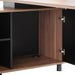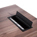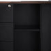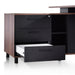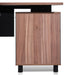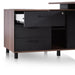 Table top in engineered wood with walnut oak veneer Metal legs finished in matte black Left return section and modesty panel in black Return section partially assembled for your convenience Removable modesty panel with storage locking included Return section with 3x drawers, 1x large storage compartment, and two-tier shelving 1x appliance port for easy cable management Commercial grade 5 year warranty Note : Approximate assembly duration of 45 minutes with two-man assembly, furniture assembly experience, and an electric drill required.