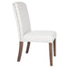Classic looking is this Lethbridge Dining chair, with maximum comfort. Featuring a natural linen look fabric with silver studs on the back and side. The Lethbridge would suit the Manhattan Apartment, Hamptons & French Country Styles. Antique wood coloured straight legs. The Lethbridge is ready to assemble furniture.