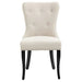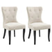 Classic looking is this Lugano dining chair set, with maximum comfort. Featuring a natural linen look fabric with buttoned back. The Lugano would suit the Manhattan apartment, Hamptons & French Country Styles. Painted black tapered legs. The lugano is ready to assemble furniture, lightweight and versatile in design.