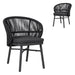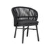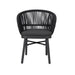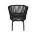 Charcoal polyester fabric upholstery Aluminum frame and legs 6mm rope detailing with 4cm thick cushion Rope with spandex polyester core Outer layer of rope; UV-resistant plastic and high-strength yarn Removable cushion with foam filling Gently rounded backrest Soft-to-medium seat firmness Cross-brace support Ergonomic design Weight Capacity: 200 kg Product comes fully assembled