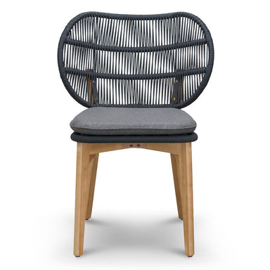 Steel frame structured in a modern style design Anthracite grey cushion 4.5mm round rope forming a curved backrest Acacia wood legs 120kg weight li...