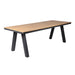 Polywood tabletop in a teak finish Sturdy aluminum frame and legs Bold charcoal-hued angled legs Textured grain finish for an organic look Spacious 2.3m length This product is supplied flat-packed and requires assembly by two people Note: The tabletop is made from polywood, a durable synthetic material designed to mimic natural wood with a subtle textured grain.