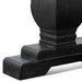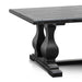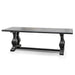 Reclaimed elm wood veneer with engineered wood Untreated matte black finish to showcase the natural pattern of reclaimed wood Square turned pedestal base with a flat and rectangular end Additional support beam for lasting structural integrity Seats 8 people Product is flat packed and requires two-person assembly Note: The timber used in this range is recycled elm timber. The tables are handmade and have been prepared to give the table top a unique finish. The table will naturally have distinctive characteristics such as cracks, splits and imperfections, which are then filled and evened out using square timber fillings where required for single piece table tops. The raw and rustic features should be appreciated as part of the look and are not manufacturing defects. A slight bow on the table top is characteristic of reclaimed timber due to its oversized length.