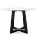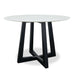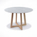 The Tiril Round Dining Table pairs sculptural simplicity with material contrast, designed to seat up to four with ease. Available with a top in Italian Carrara marble or timber, it offers flexibility in finish while maintaining a clean, architectural presence. The solid wood legs are offered in black or dark brown, grounding the form with subtle depth and structure.